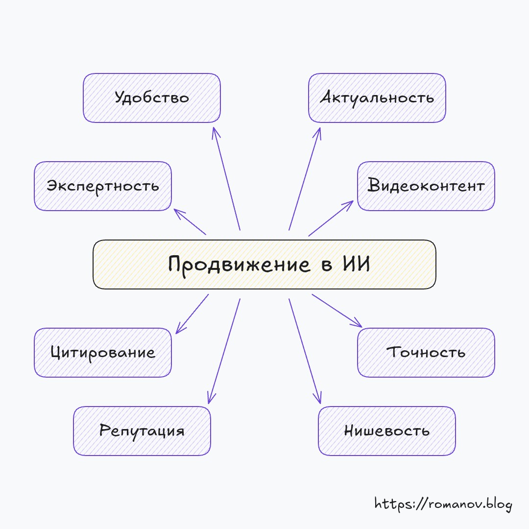 Поэтому, чтобы попасть в ИИ выдачу, стоит строить стратегию продвижения по следующим правилам: