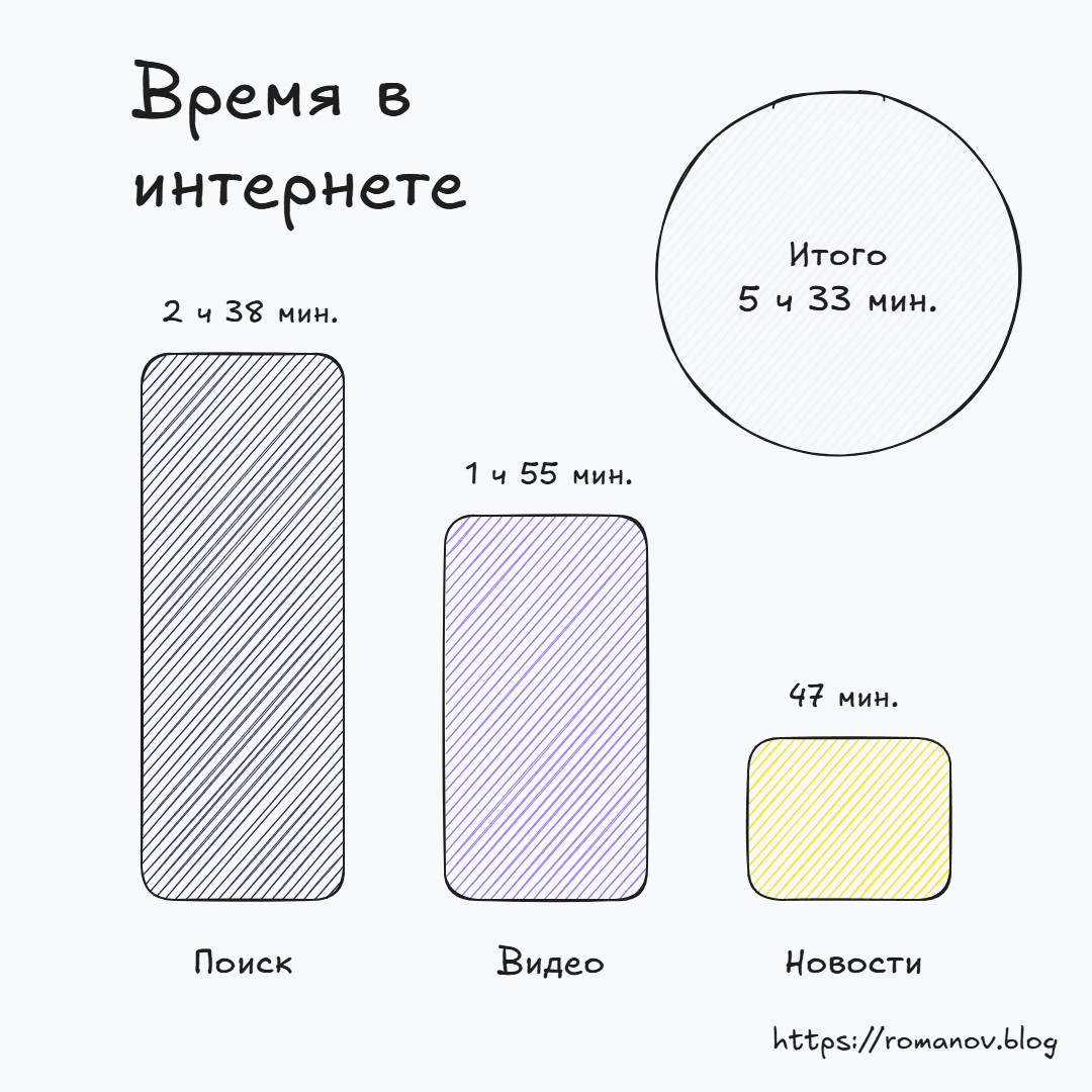 Недавно Яндекс сделал аналитику, как проводит день в минутах среднестатистический россиянин. Статистика получилась очень интересной: